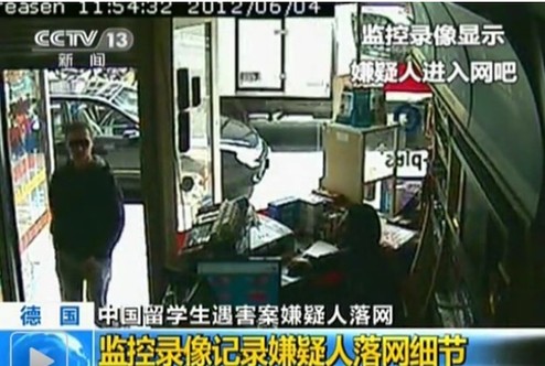 在德国一家网吧监控录像记录了嫌疑人马尼奥塔进入网吧并且被警方逮捕的过程,从监控录像中可以看到,当地时间的6月4号下午13点37分,嫌疑人马尼奥塔戴着墨镜身穿连帽衫进入这家网吧,走进网吧后摘下了墨镜并与网吧管理人员交谈了一会,然后径直走进网吧内,不久后,多名警察闻讯赶到将嫌疑人马尼奥塔逮捕并且带离网吧。