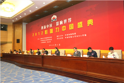 1月27日,由2012影响力中国盛典组委会联合中国商业企业管理协会、《市场观察》杂志社、中国和润集团、中国传媒大学MBA学院联袂打造的“2012影响力中国盛典”在京举行,“2012影响力中国风云榜”同时发布。2012影响力中国盛典举行同时,进行了中国传媒大学国学与管理研究中心揭牌仪式以及“影响力中国论坛”等活动。活动上,联合国经济发展委员会发来了贺信。