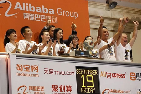 2014年9月19日,阿里巴巴在纽交所正式进行IPO,股票交易代码为“BABA”。发行价最终确定为每股68美元,以218亿美元的融资额创造了美股史上的最大规模的IPO。开盘价报92.7美元,阿里巴巴从而一举超越Facebook成为仅次于谷歌的第二大互联网公司。