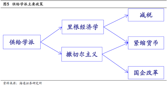 来自供给学派的典型实践。纵观世界经济历史,美国曾在20 世纪70 年代陷入滞胀,英国也在20 世纪70-80 年代面临滞胀叠加结构性问题的窘境。作为供给学派的典型实践,“里根经济学”(Reaganomics)和“撒切尔主义”(Thatcherism)分别采用减税和国企改革等措施帮助经济走出衰退的泥淖。