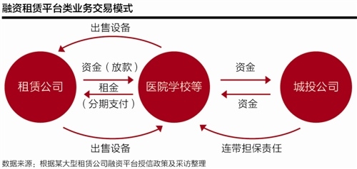 融资租赁平台类业务交易结构则主要为,城投公司通过售后回租的方式向租赁公司融资,即融资平台将其持有的道路、管网等首先出售给租赁公司,然后分期向租赁公司支付租金,到期后象征性支付一定费用将设备购回。