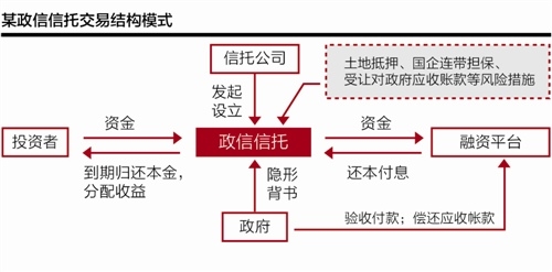 这一背景下,政信信托、租赁公司平台类业务乘机而入。政信项目一般的操作方式为,地方融资平台以土地抵押、对当地政府的应收账款收益权等向信托公司融资。