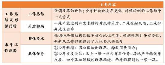 在整体要求上,去年稿件写道“着力加强结构性改革,在适度扩大总需求的同时,提高供给体系质量和效率,提高投资有效性,加快培育新的发展动能”,而今年是“坚持以推进供给侧结构性改革为主线,适度扩大总需求,加强预期引导,深化创新驱动”——与今年全年政策脉络相符,供给侧核心地位不变,同时强调预期引导的重要性(注意权威人士今年5月9日出现在人民日报第二版,合计讲了5个问题,其中首次独立板块谈预期引导,足见重要性)。