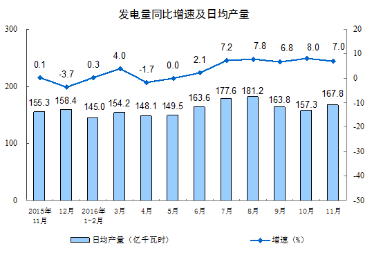 2016年11月份,规模以上工业增加值同比实际增长6.2%(下同,增加值增速均为扣除价格因素的实际增长率),较10月份加快0.1个百分点。从环比看,11月份,规模以上工业增加值比上月增长0.51%。1-11月份,规模以上工业增加值同比增长6.0%。