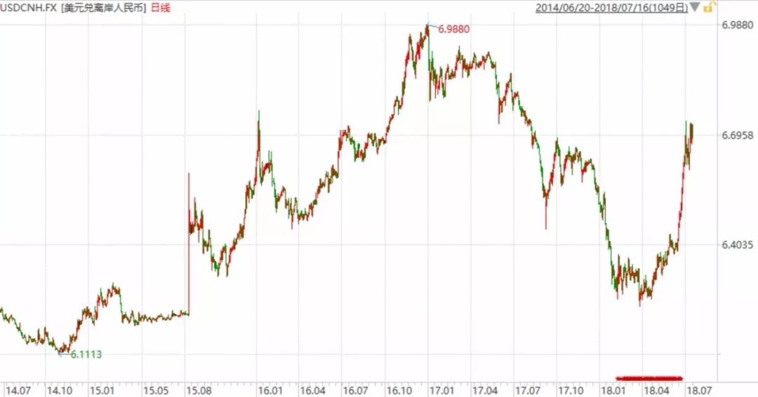 8月15日,离岸人民币汇率大跌501点,收于6.9467;8月16日,离岸人民币汇率一度大涨逾700点,截至北京时间21:30报6.8788。