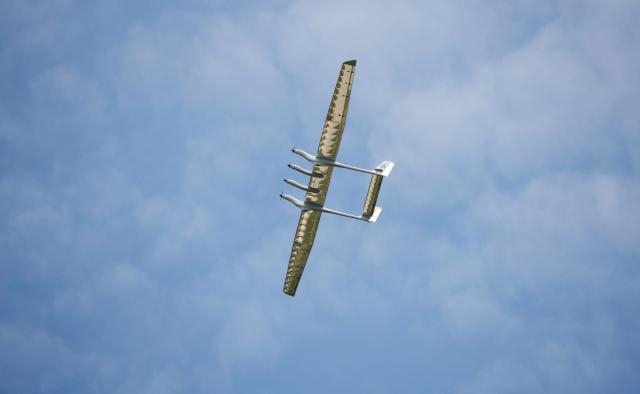 拥有我国自主知识产权的中大型太阳能驱动“墨子Ⅱ型”长航时飞机在天空翱翔。 新华社图片