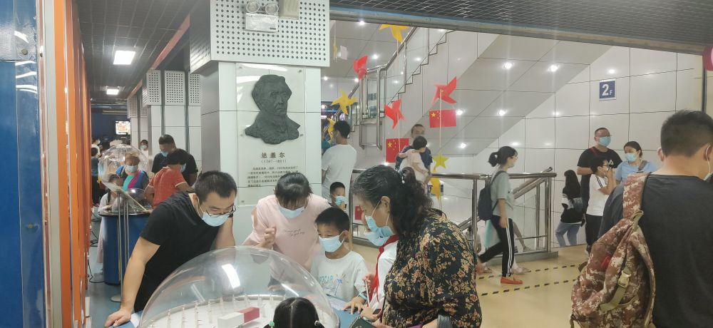 科技馆的其他楼层,同样是人头攒动。“每逢重大节假日,就是科技馆最忙碌的时候,这是我们工作性质决定的。”杨媛媛说,国庆长假期间,场馆每天开放超过7个小时,一线工作人员100多人全员在岗,还有大批的科普志愿者与义务辅导员在馆,尽全力做好服务保障工作。