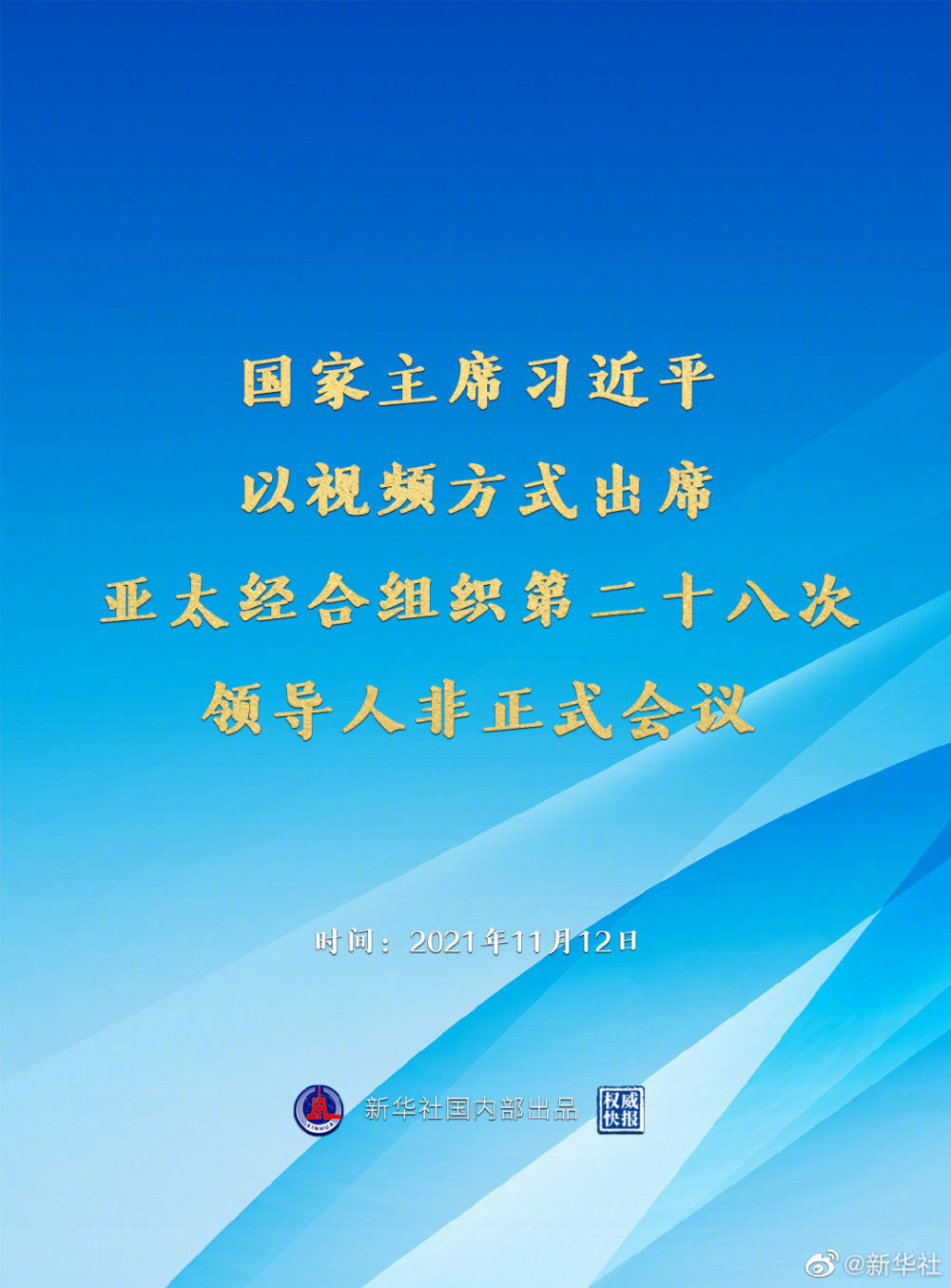 首页>要闻>财经要闻 习近平出席亚太经合组织第二十八次领导人非正式会议 新华社微博2021-11-12 20:06 国家主席习近平11月12日晚在北京以视频方式出席亚太经合组织第二十八次领导人非正式会议。