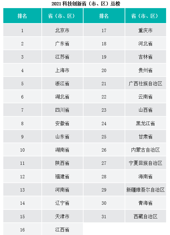 《2021中国科技创新竞争力研究》发布:北京、广东领跑科技创新省(市、区)总榜