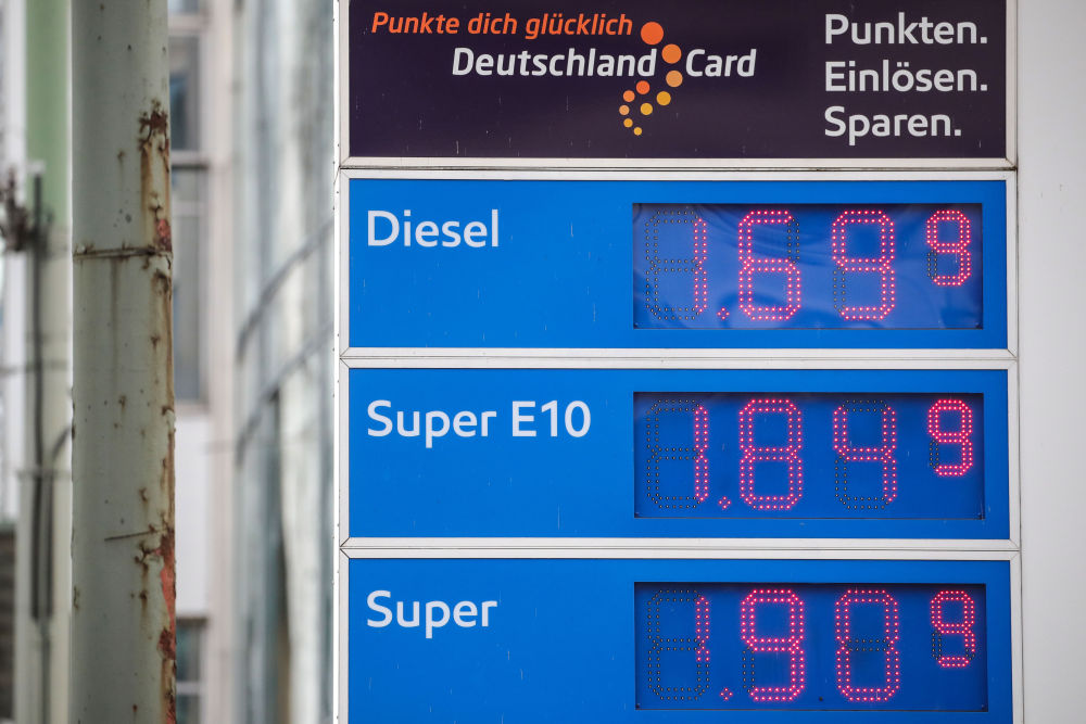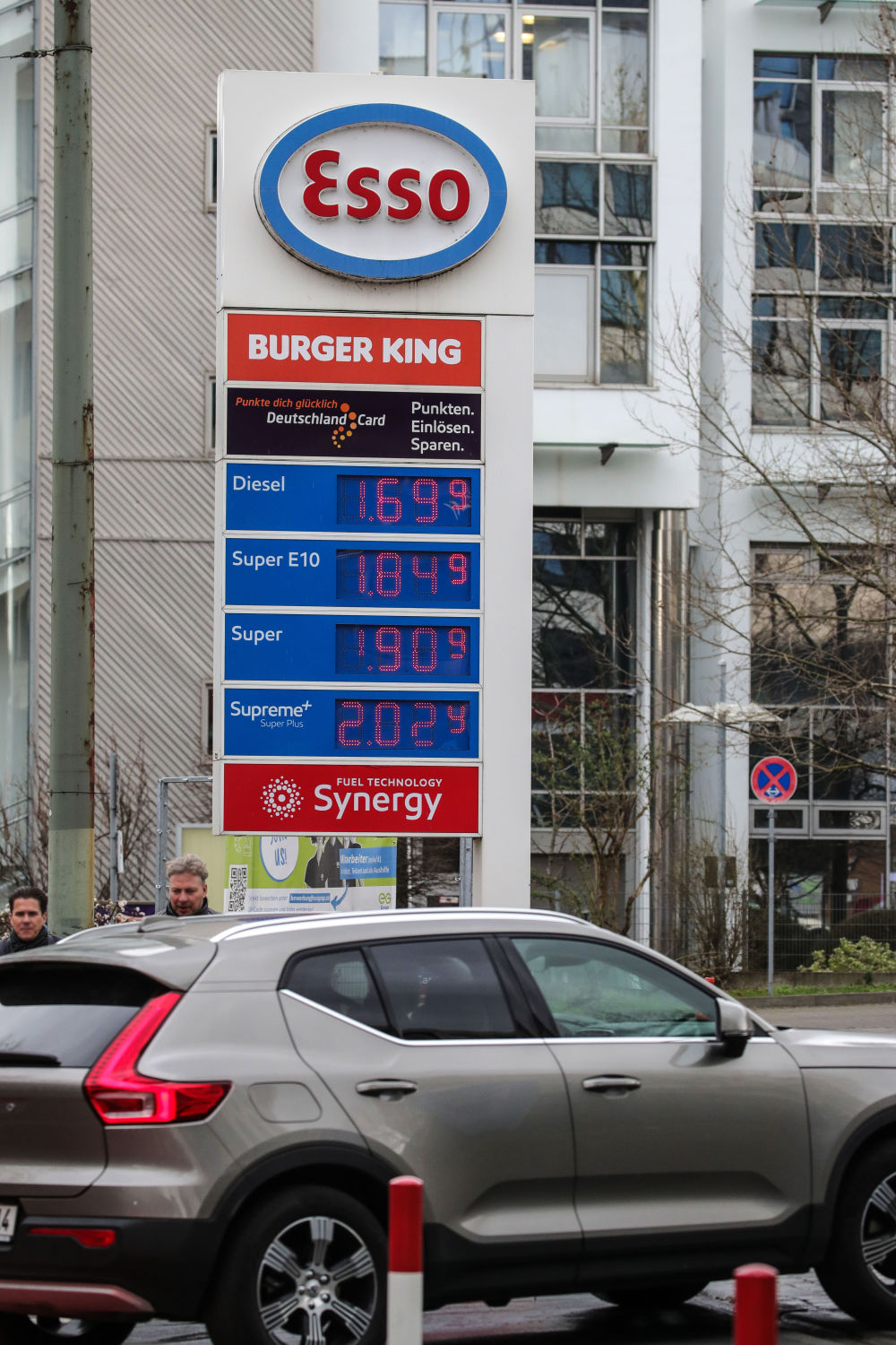 ↑这是2月25日在德国法兰克福拍摄的一家加油站屏幕上显示的油品价格。新华社发(阿曼多·巴巴尼摄)