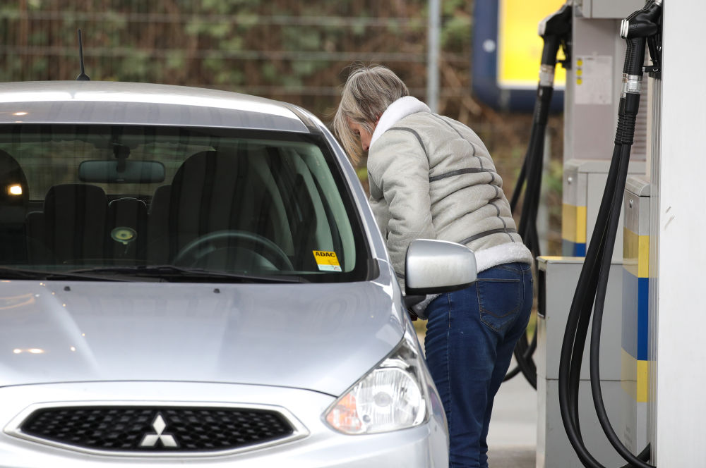 ↑2月25日,在德国法兰克福,一名女子在加油站为汽车加油。新华社发(阿曼多·巴巴尼摄)