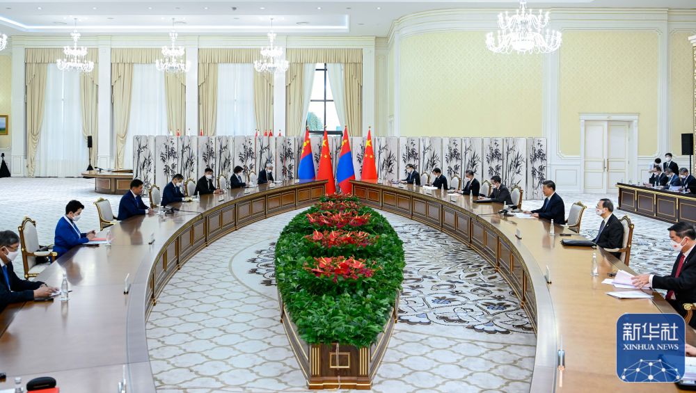 习近平强调,世界大势浩浩荡荡,和平与发展是各国人民共同期盼,单边主义、霸权行径、冷战思维终将在历史潮流中湮灭。中方始终坚持和平、发展、合作、共赢原则,坚持构建人类命运共同体。中蒙要坚持友好相待、守望相助、合作共赢,打造邻国关系典范。要加强战略沟通和政策协调,坚持相互尊重各自独立、主权和领土完整,坚持尊重两国人民自主选择的发展道路,坚定支持彼此核心利益和重大关切,维护好、巩固好双边关系发展的政治基础。中方愿同蒙方加强治国理政经验交流,加强“一带一路”倡议同“草原之路”倡议对接,推进中蒙俄经济走廊建设,落实全球发展倡议和全球安全倡议,支持蒙古国实现更好更快发展。中方支持蒙方“种植十亿棵树”计划,愿同蒙方积极开展防治荒漠化项目合作。
