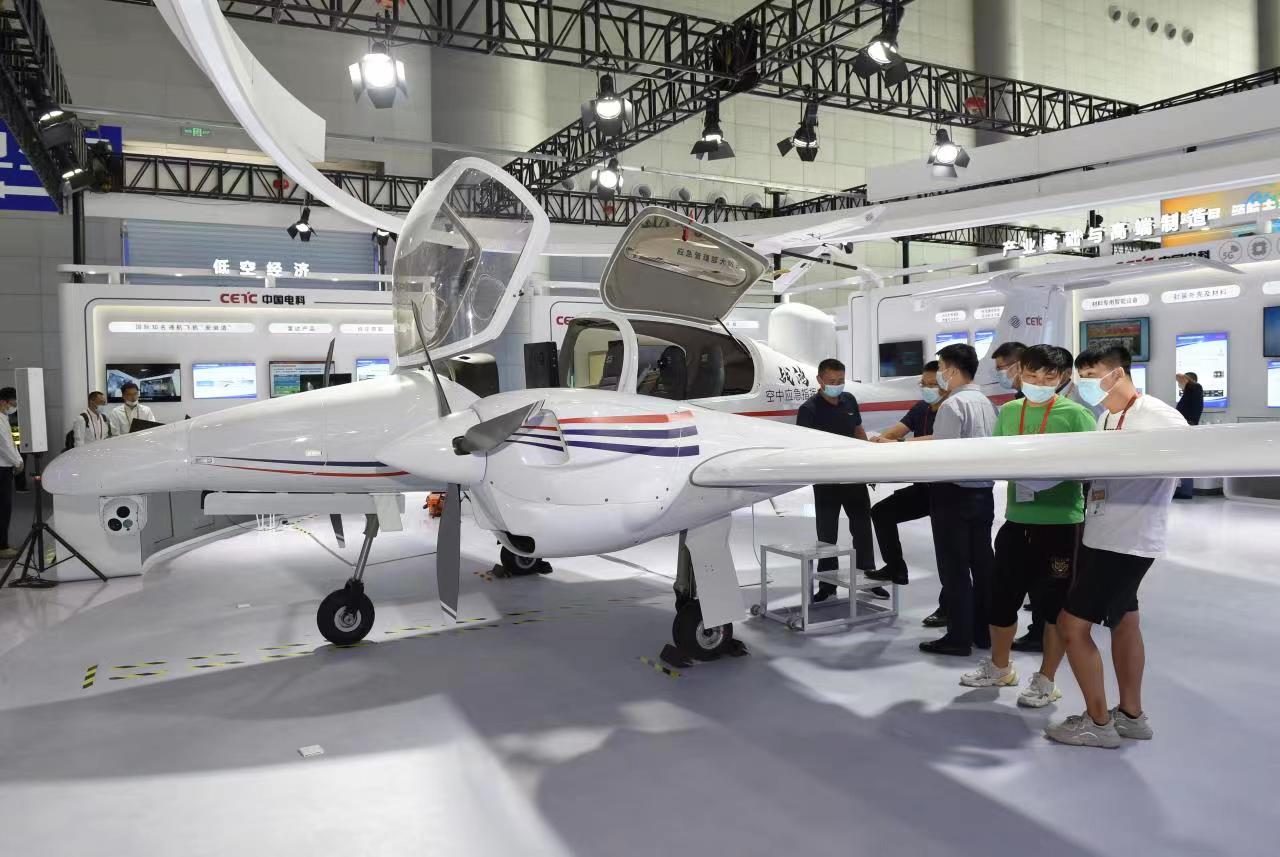 9月20日,参观者在2022世界制造业大会上参观展出的空中应急指挥机。