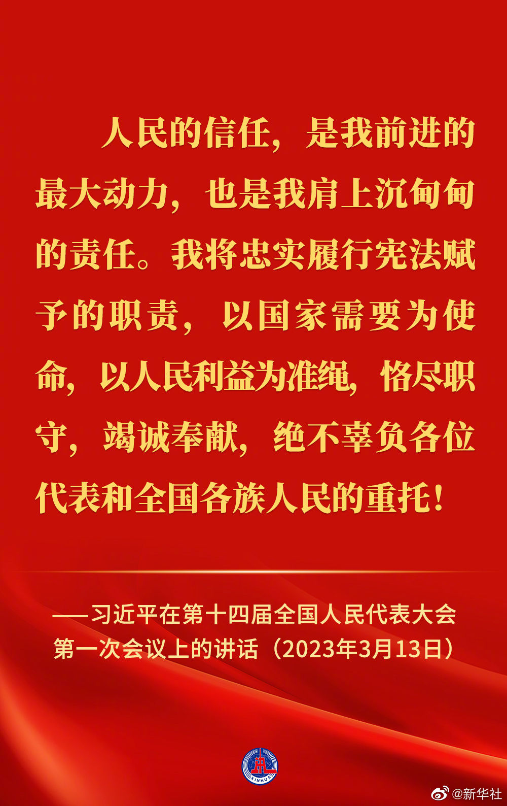习近平在第十四届全国人民代表大会第一次会议上的讲话金句