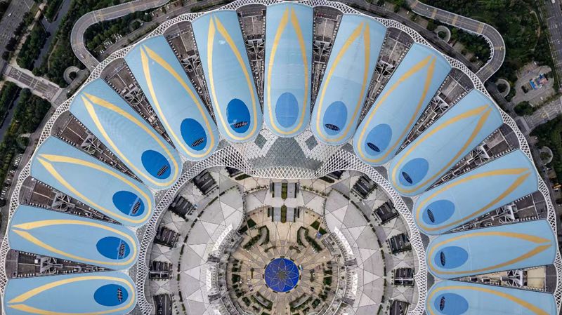 这是8月7日拍摄的第七届中国—南亚博览会举办地昆明滇池国际会展中心(无人机照片)。
