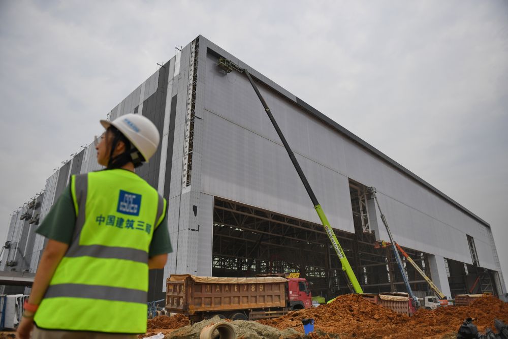 2023年8月15日,在位于四川省成都市双流区的空中客车(成都)飞机全生命周期服务有限公司项目建设现场,工人在作业。新华社发(李向雨 摄)