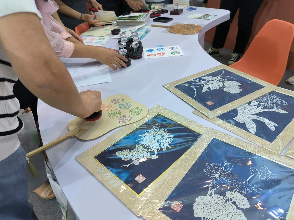 “您好!麻烦给我盖个章!”展览现场,众多市民、游客参观“打卡”忙个不停,其中不少人手持折扇、明信片等来到文旅及非遗项目展区集印章。