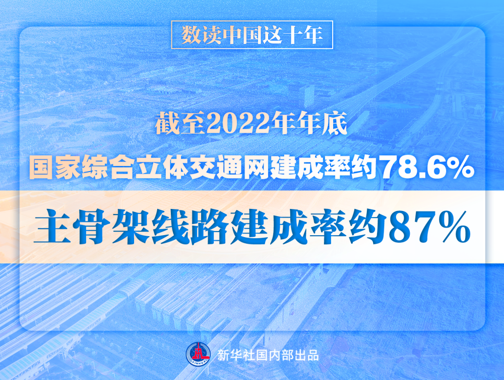 党的十八大以来,我国综合交通运输体系建设取得了历史性成就。截至2022年年底,全国综合交通网络总里程超过600万公里;国家综合立体交通网建成率约78.6%、主骨架线路建成率约87%。