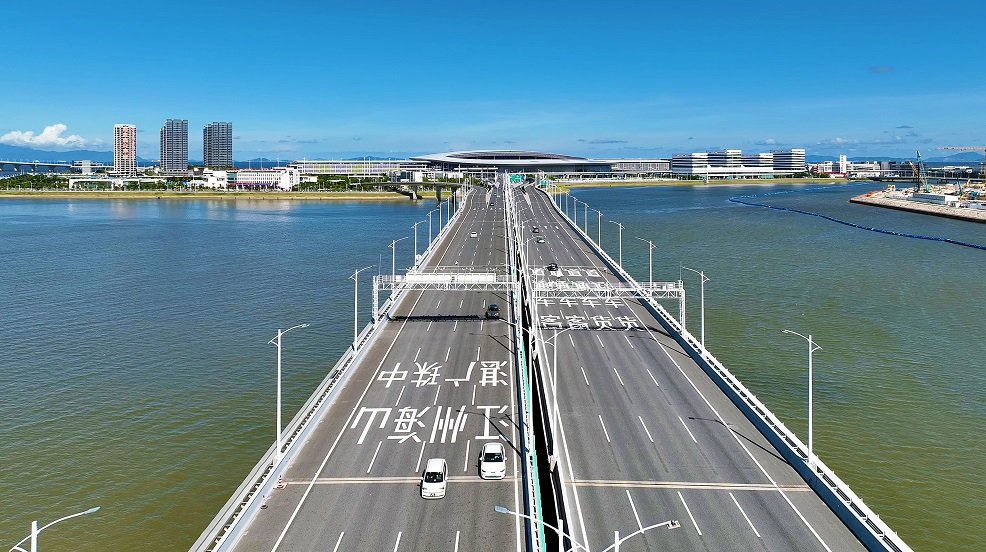 图为车辆在港珠澳大桥上行驶(无人机照片)。 新华社图文