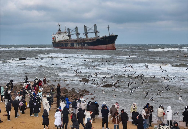 新华社济南2月19日电(记者李志浩)浪花层叠,海鸥盘旋,相机快门声不断……新春假期,山东威海一处沙滩上,青年游客络绎不绝,他们不只是来看海,更为观赏一艘轮船。