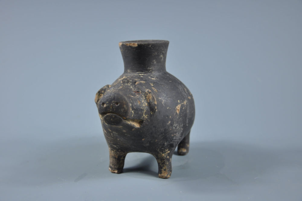 图为磨盘山遗址出土的崧泽文化陶猪尊。(磨盘山考古队供图)