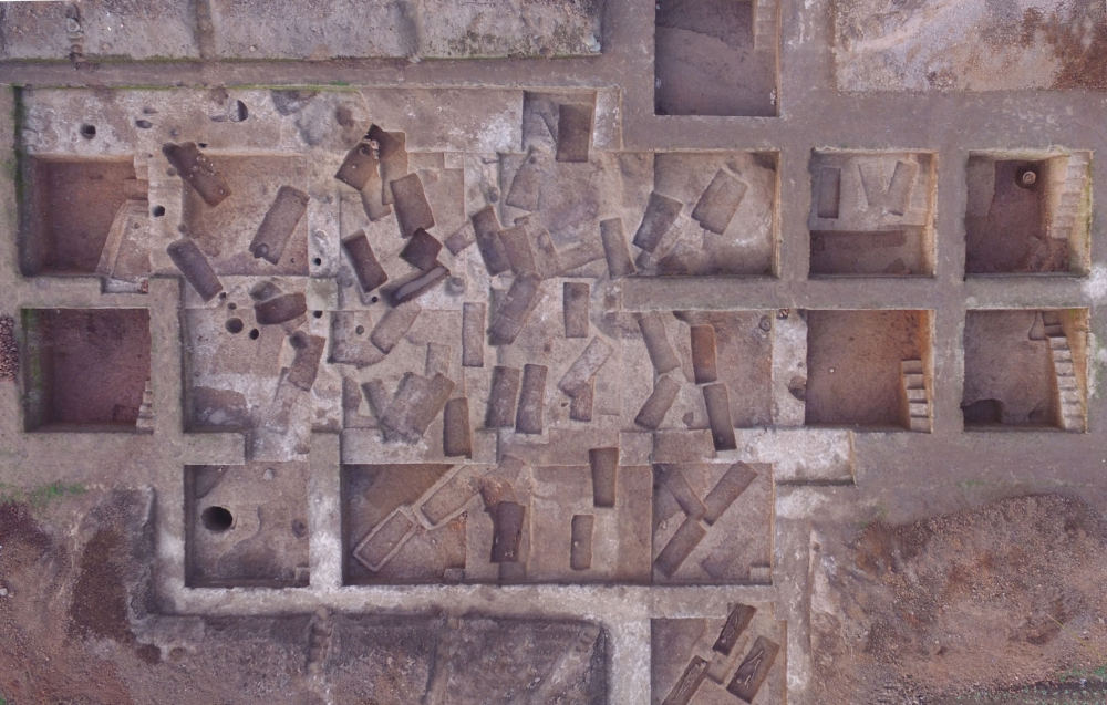 图为磨盘山遗址崧泽文化墓葬区的考古现场。(磨盘山考古队供图)