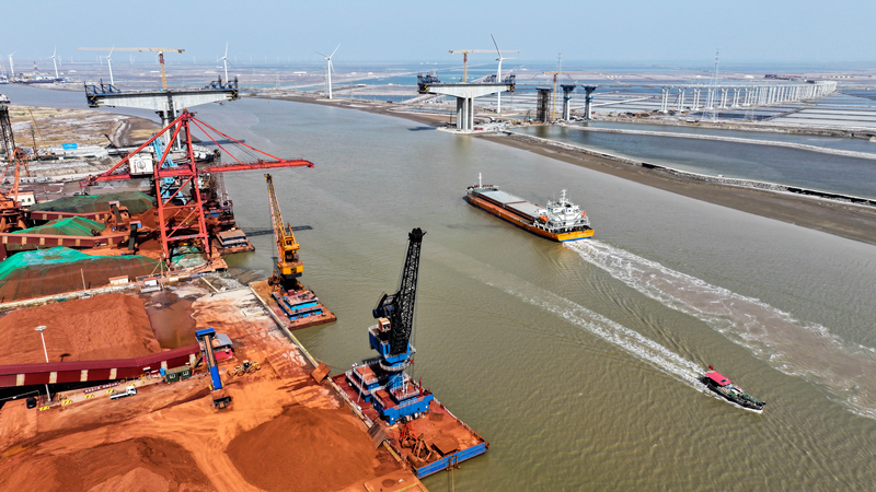 图为滨州市交通投资发展集团套尔河港区铝矾土装卸码头(无人机照片)。新华社图片