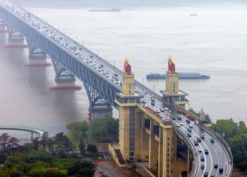 记者5日从公安部交管局获悉,今年“五一”假期,全国主干公路交通流量持续保持高位运行,从交管局监测的75条主干高速公路700个重要通道监测节点来看,通行流量较去年假期上升4.19%。假期期间,全国道路交通安全形势总体平稳有序。图为5月5日拍摄的南京长江大桥上的车流(无人机照片)。 新华社图文