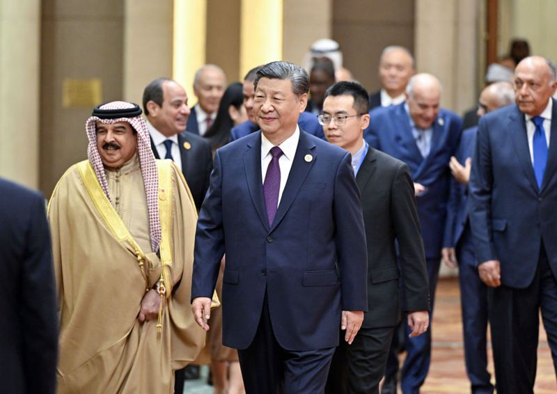 习近平强调,当前,世界百年变局正在加速演进。中国和阿拉伯国家都肩负着实现各自民族振兴、加快国家建设的时代使命。构建中阿命运共同体彰显我们开辟中阿关系新纪元、开创美好世界新未来的共同愿望。中方愿同阿方守望相助,平等互利,包容互鉴,紧密协作,把中阿关系建设成维护世界和平稳定的标杆、高质量共建“一带一路”的样板、不同文明和谐共生的典范、探索全球治理正确路径的表率。