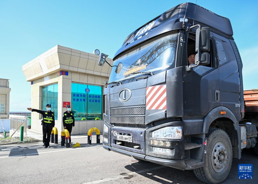 2024年4月18日12时许,在霍尔果斯公路口岸,一辆来自哈萨克斯坦的货车通过查验站。新华社记者 陈朔 摄