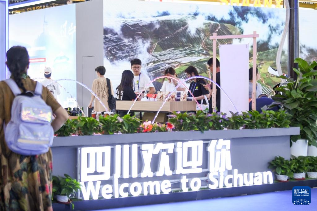 2024年6月27日,在第八届中国—亚欧博览会上,观众在四川展台参观。新华社记者 王菲 摄