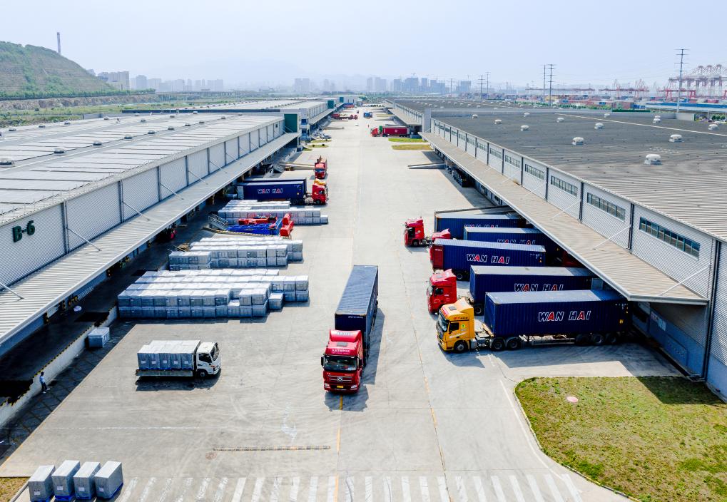 图为6月13日,普洛斯青岛前湾港国际物流园跨境电商客户仓库内景(记者杨溢仁摄)