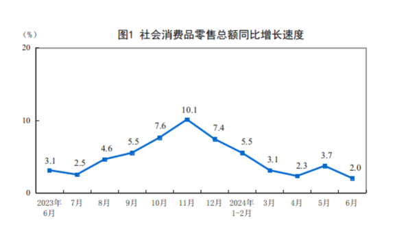 2024年1—6月份社会消费品零售总额同比增长3.7%