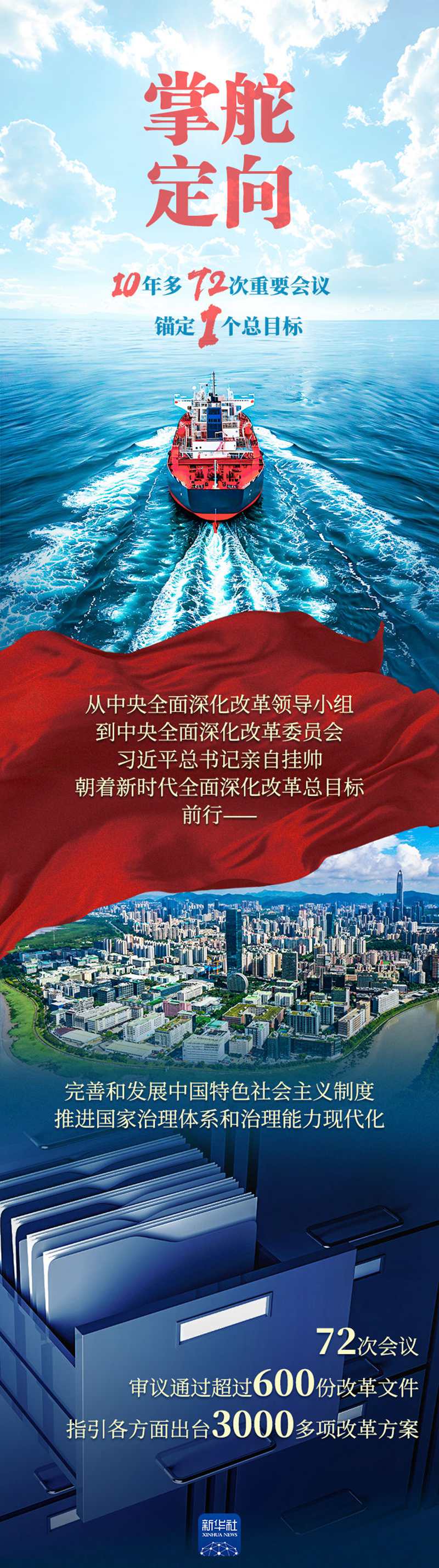 10年多来,这样的会议,习近平总书记主持召开了72次。总体设计、统筹协调、整体推进、督促落实,习近平总书记掌舵领航,中国改革航船沿着正确航线向更深水域、更广天地前进。