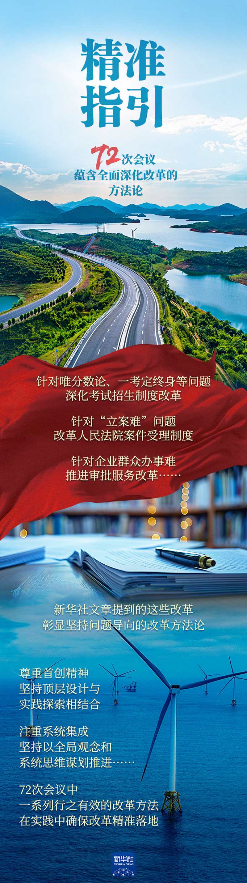从“加强对跨区域跨部门重大改革事项协调”,到“试点是改革的重要任务,更是改革的重要方法”,再到“以全局观念和系统思维谋划推进改革”……历次会议中,一系列行之有效的改革方法令人耳目一新,并在实践中确保全面深化改革精准发力、精准落地。