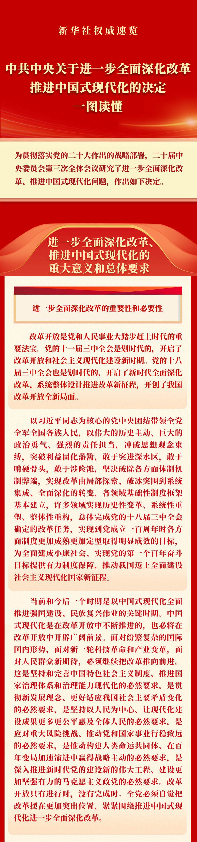 新华社权威速览|《中共中央关于进一步全面深化改革、推进中国式现代化的决定》一图读懂