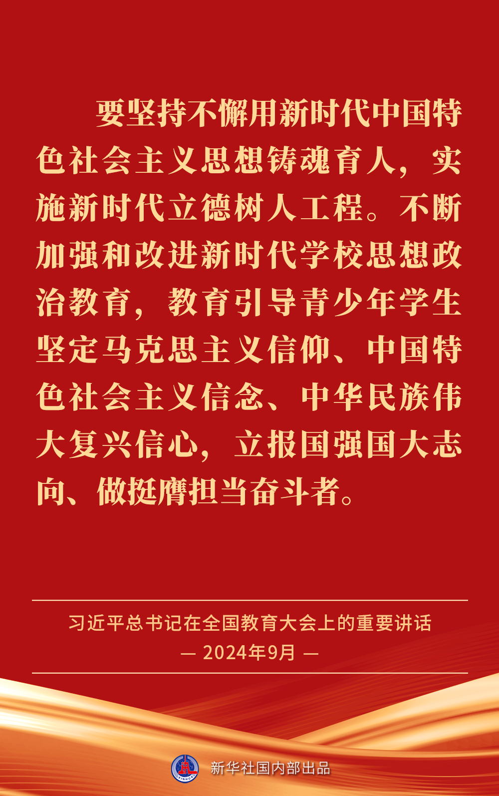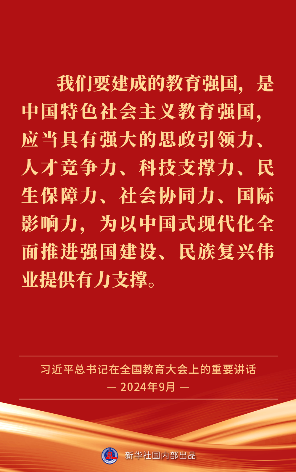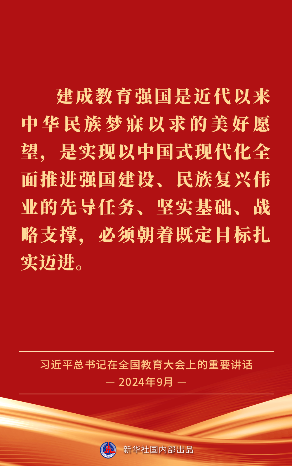 首页 > 要闻>财经要闻 金句|习近平总书记的重要讲话为建设教育强国指明前进方向 新华社 2024-09-11 07:33 全国教育大会9月9日至10日在北京召开。习近平总书记出席大会并发表重要讲话。 一起来看讲话金句。