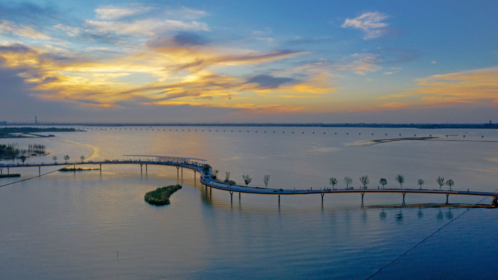 长三角一体化示范区标志性湖泊元荡。新华社记者 刘颖 摄