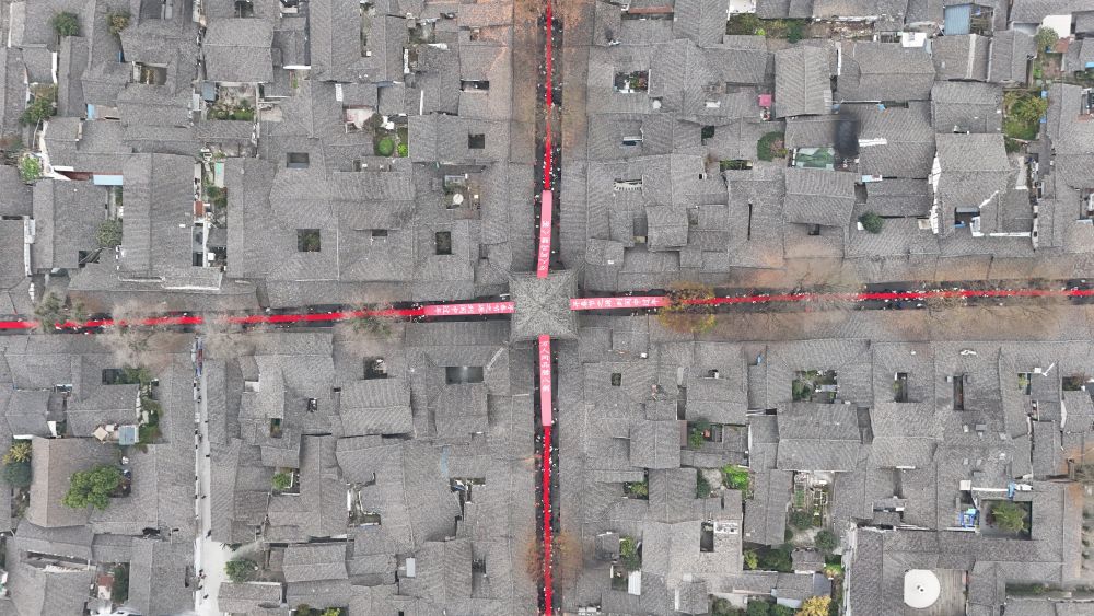 充满浓浓年味的阆中古城(无人机照片)。新华社记者 薛晨 摄