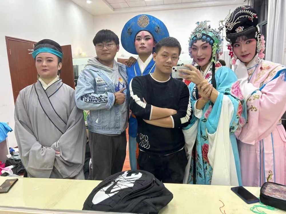 “我的寒假是从唱戏开始的。”贡健强笑着说。1月10日,他就从河北燕郊的学校出发,直接飞往安徽黄山市歙县瞻淇村参加乡村“村晚”。之后一直到除夕,他和小伙伴们都不断奔波在安徽、江苏多地的舞台上,献上一场场精心准备的剧目。“最忙的时候一天跑三场演出,超级累,但看到那么多人想听、爱听泗州戏,还是觉得很开心。”
