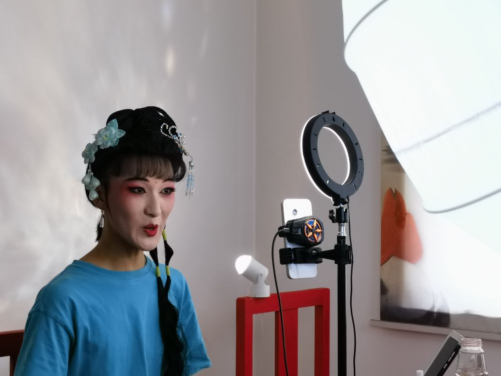 这个春节,贡健强不仅在线下的舞台上奔忙,他还活跃在网络平台上,用直播和短视频传播泗州戏。每一次直播,他都会认真地“扮上”,从戏曲知识的深入浅出讲解,到经典唱段的精彩展示,他的直播间吸引了许多年轻人的关注。“一次直播一个多小时,一场直播最高峰时有2000多名观众同时在线。”