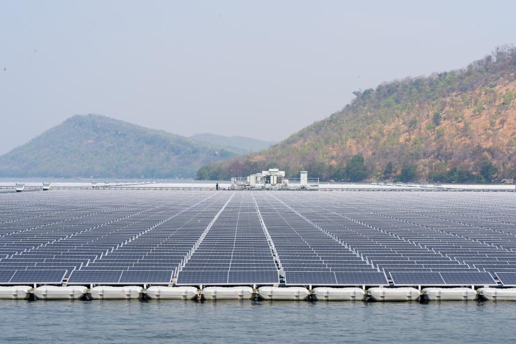 这是2024年3月5日拍摄的泰国孔敬府乌汶叻水面漂浮光伏电站。由中国东方电气集团国际合作有限公司承包建设的泰国孔敬府乌汶叻水面漂浮光伏电站5日并网发电,助力泰国可再生能源发展。新华社记者林昊摄