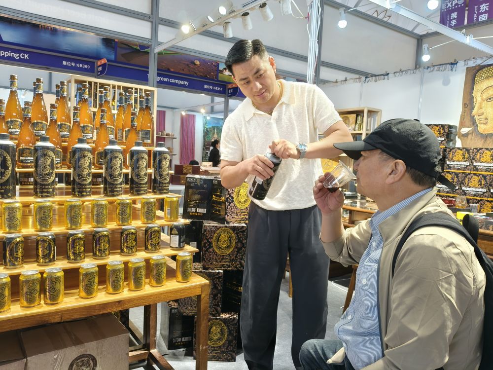 在老挝展区的啤酒展位前,聚集着前来“尝鲜”的昆明市民。“这次我们组织了25家中小企业到昆明参加南博会,更多老挝产品有机会和中国消费者见面。”老挝国家工商联副主席占塔颂表示,依托中老铁路,老挝的农副产品出口更便利,期待通过南博会,让中国的消费者对老挝的特色产品有更深入的了解。