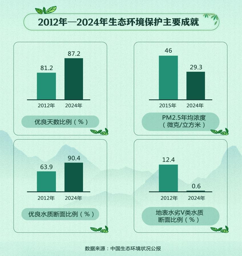 图1:2012—2024年中国生态环境质量改善成就