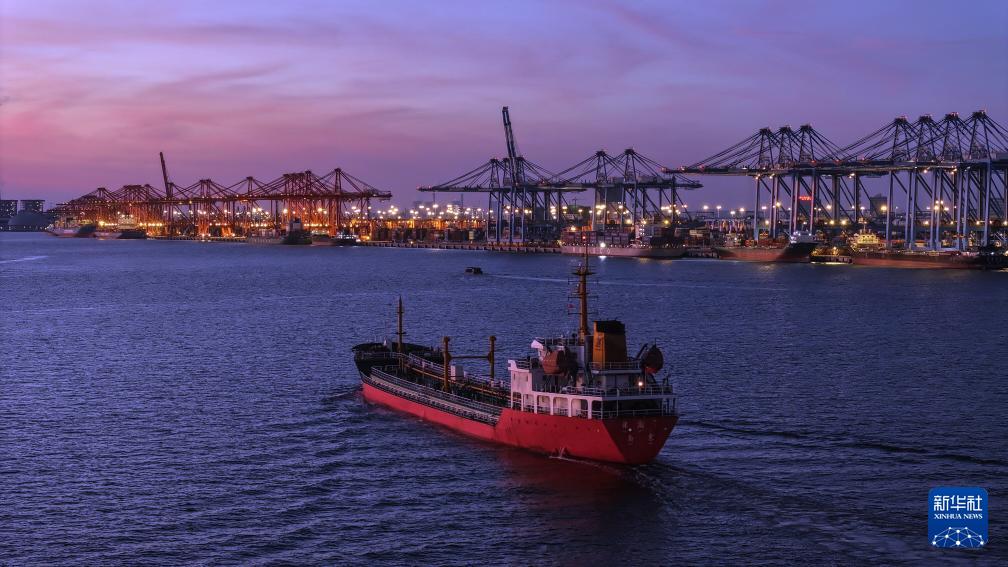 9月4日,一艘海轮驶入钦州港装卸货物(无人机照片)。新华社记者 张爱林 摄