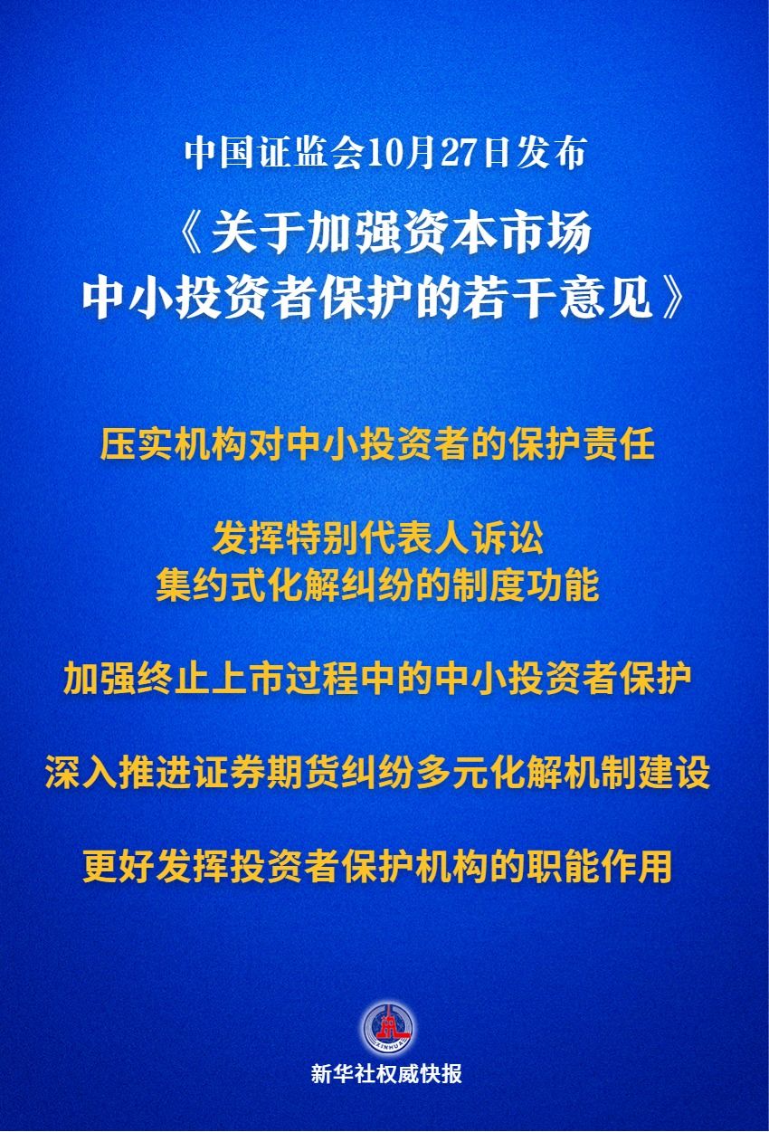 中国证监会10月27日发布《关于加强资本市场中小投资者保护的若干意见》。