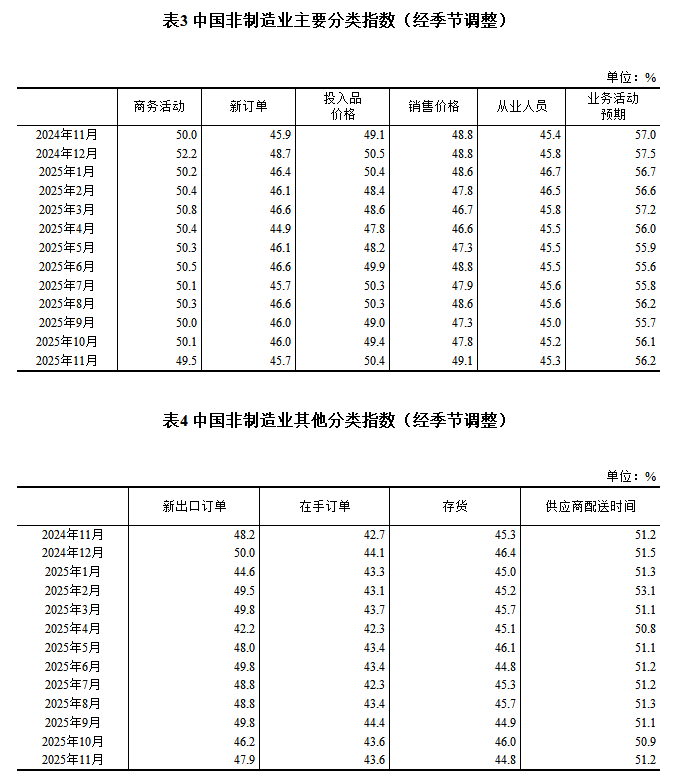 11月份,非制造业商务活动指数为49.5%,比上月下降0.6个百分点。