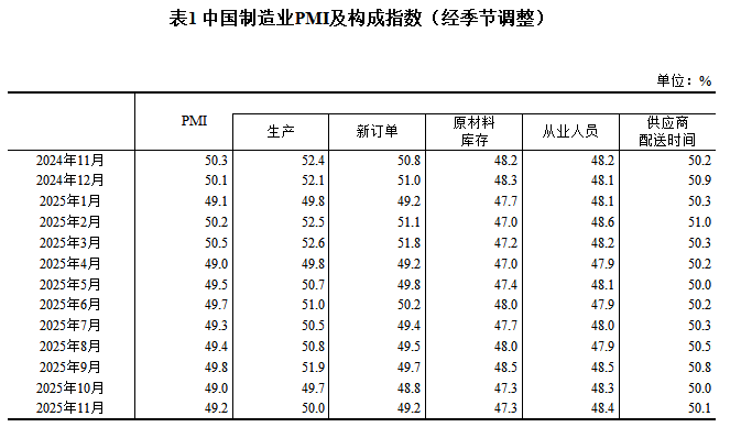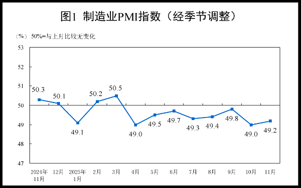 11月份,制造业采购经理指数(PMI)为49.2%,比上月上升0.2个百分点,景气水平有所改善。