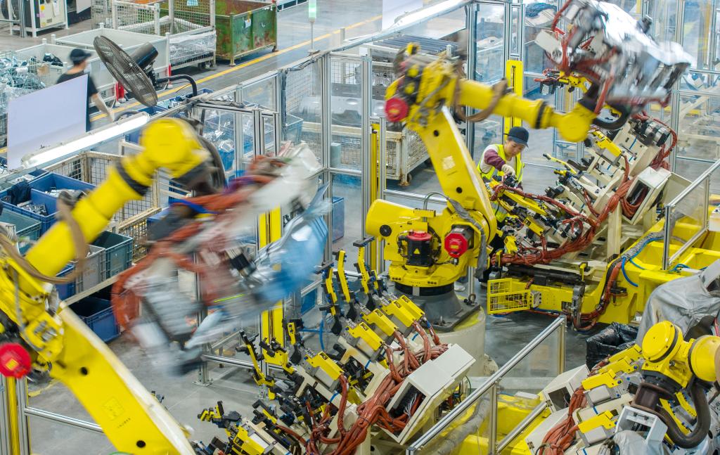 安徽合肥是新能源汽车产业的重要集聚地,江淮、比亚迪、蔚来、大众等6家整车企业在此落户。记者在蔚来先进制造新桥二工厂看到,部分制造场景已实现AI智能决策,大大小小的智能装配岛上,天窗、前后挡风玻璃等零部件装配“并联”作业,总装方案由“单行道”变“立交桥”,多平台多车型可同时在线生产,平均一分钟下线一台车……