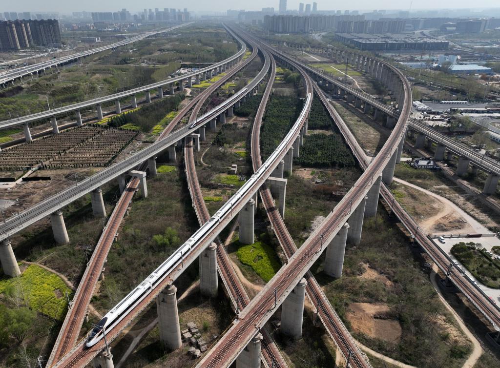 2025年3月31日在河南省郑州市拍摄的纵横交错的高铁线路(无人机照片)。新华社记者 李嘉南 摄